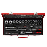 - مجموعه ای شامل 38 قطعه از ابزارآلات حرفه ای به منظور انجام طیف گسترده ای از فعالیت ها، تولید شده از مواد با کیفیت بالا به منظور دستیابی به حداکثر گشتاور و بالاترین دوام و مقاومت - شامل سوکت ها، دسته ها و کمک های 1/2"و 1/4" اینچی برای برآورده کردن تمام نیازهای کاربران - دارای سوکت های فولادی کروم وانادیوم با مقاومت بالا که حداکثر گشتاور را برای انجام کارها فراهم می کنند و همچنین مقاومت بالایی در برابر زنگ زدگی و خوردگی دارند - این بکس ها ماشین کاری شده اند تا افزایش دقت در عملکرد را به همراه داشته باشند و همچنین وجود لبه های مورب بکس ها سبب می شود تا این ابزار به راحتی با پیج درگیر شده و هیچ گونه آسیبی به لبه های پیچ نرساند - دارای دکمه خلاص کن سریع سوکت ها که روی دسته جغجغه تعبیه شده است - دارای طراحی ارگونومیک دست جغجغه که به راحتی و با استفاده از انگشت شصت امکان تغییر مکانیزم چپ گرد و راست گرد این ابزار را فراهم می کند - قابل استفاده به همراه آچار دستی و آچار جغجغه - با کمترین میزان لغزش روی مهره های یخ زده یا زنگ زده - مجموعه ای کامل و دربردارنده سوکت های مختلف، به همراه آچارها، کمک ها و دسته های گوناگون؛ ایدهآل برای انجام فعالیت های متعدد یا پروژه های DIY در محیط های کاری - بسته بندی شده در جعبه فلزی به منظور محافظت بیشتر از قطعات این مجموعه - ساخت کشور تایوان