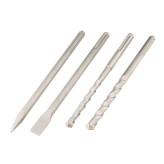 متعلقات کیف ابزار همرا ه با 5 مته یک مته 16×320 میلی متر، یک مته 18×320 میلی متر، یک مته 22×320 میلی متر، یک عدد قلم نوک تیز 25×350 میلی متر، یک عدد قلم سر تخت 25×350 میلی متر، محافظ لاستیکی ضدغبار ، عمق سنج ، ظرف گریس، دسته جانبی